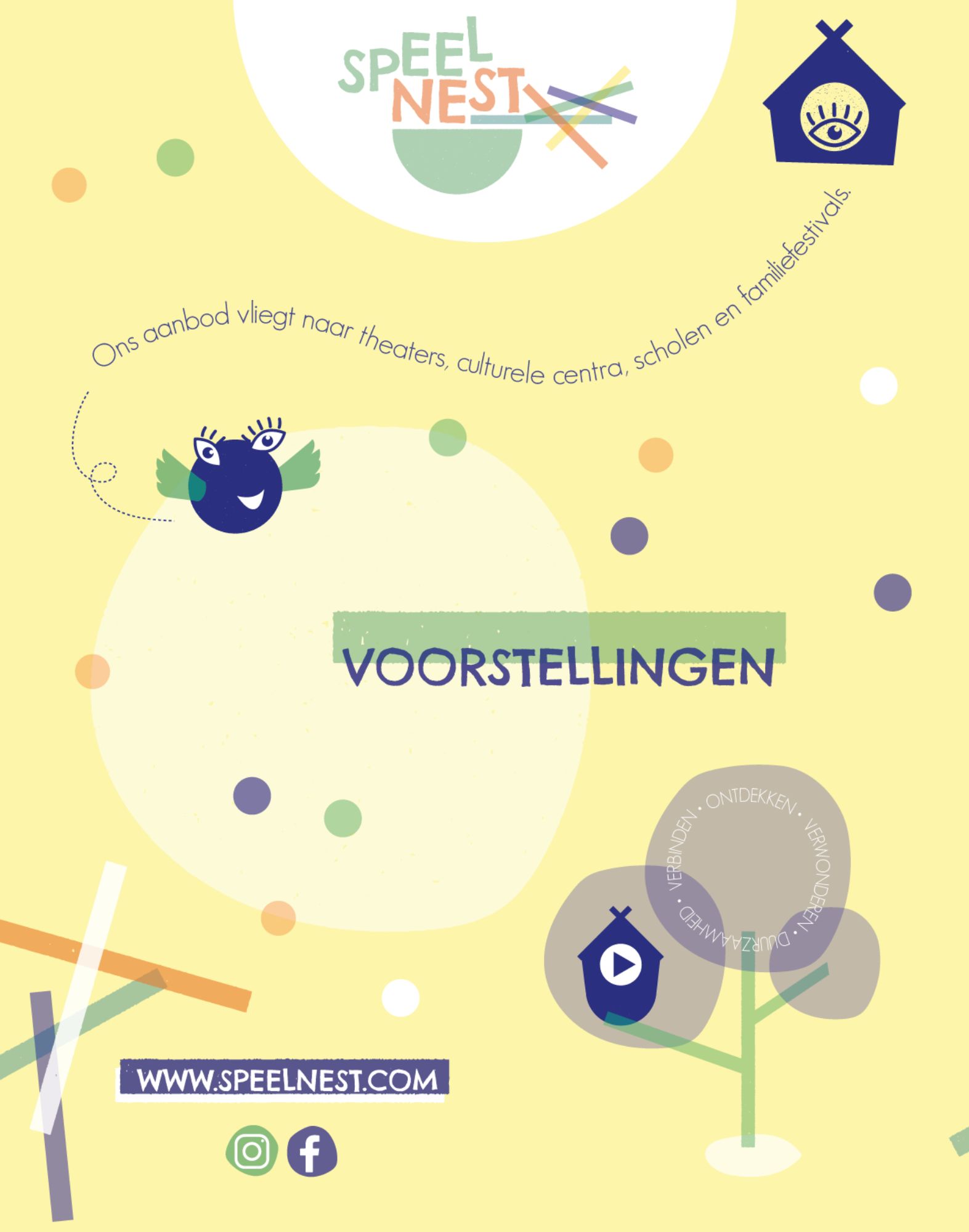 Vanaf 18 februari kunt u de artiesten rechtstreeks benaderen via de emailadressen die onder elke voorstelling/act/activiteit staan. Door omstandigheden kunnen we de service van Speelnest niet meer leveren zoals u gewend was. Enkel voor lopende en geboekte aanvragen verzorgen wij nog het e-mailcontact. De prijslijst is om die reden ook van de site gehaald. U kunt de meest recente prijzen bij de artiesten opvragen. Vanaf 1 september vindt u voor theaters en festivals op deze site een nieuw concept. Houd u de website in de gaten. Bedankt voor het vertrouwen tot nu en kom zeker gerust voor inspiratie naar onze website!