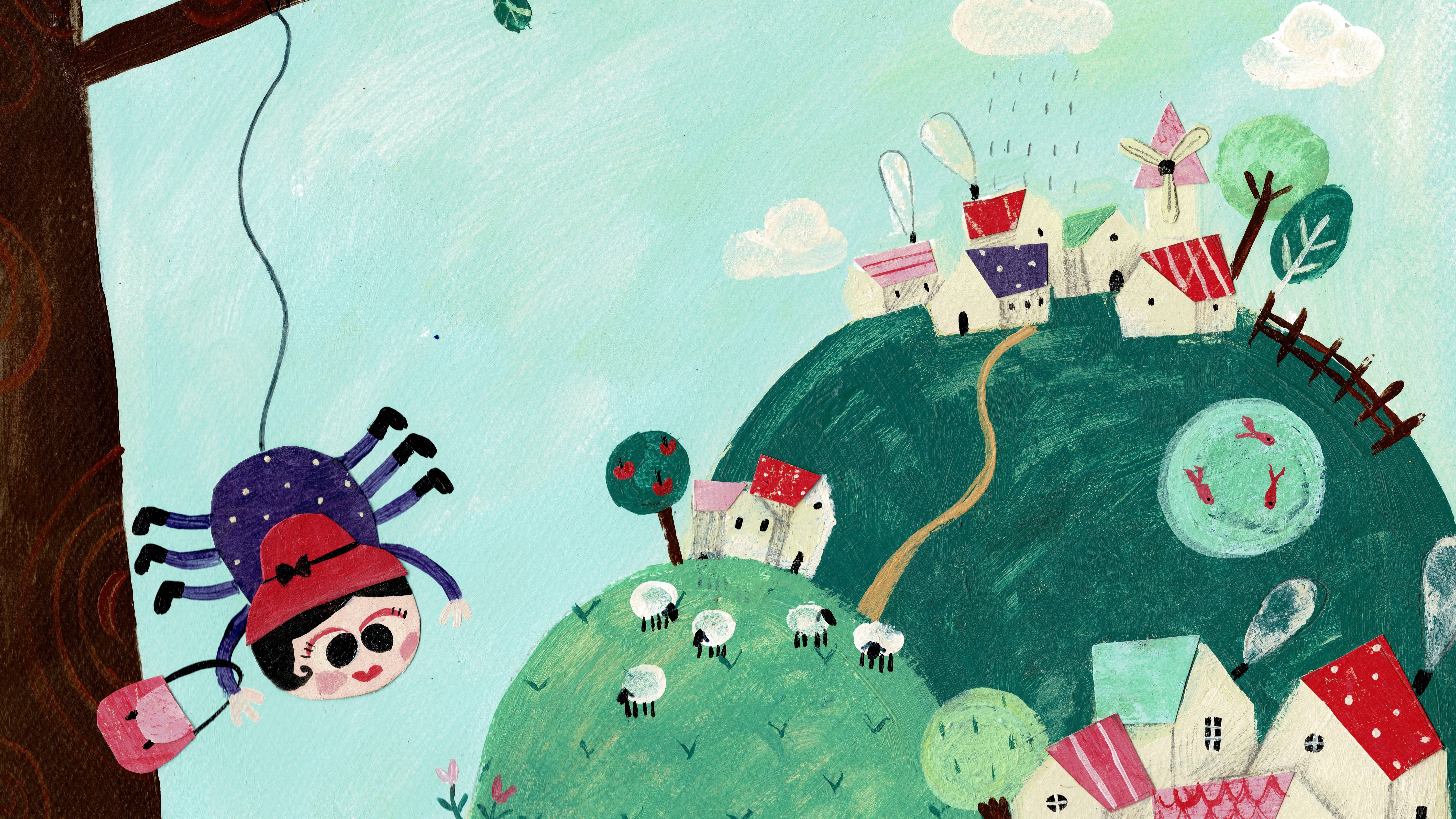 Mevrouw Spin hing op een dag in haar eentje aan een draad