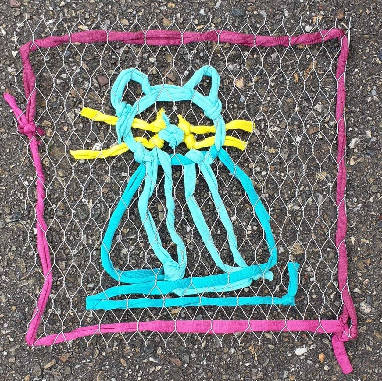 Kleurtjes kiezen, knobbelen en steek je draad tussen het kippengaas en weven maar...
