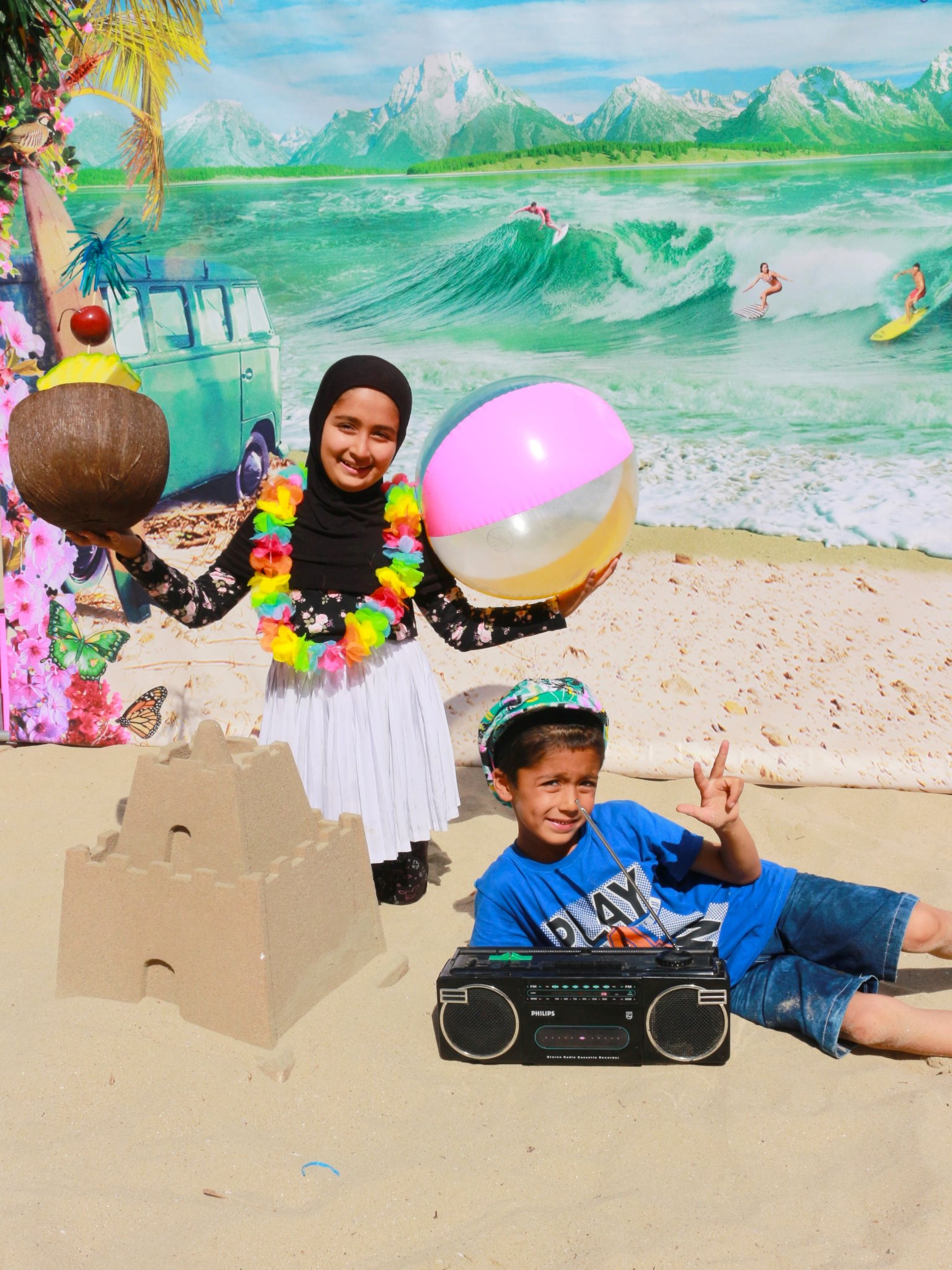 Wij halen de zon naar jouw event toe, maar ook de surfdudes, de ijsjes en de fun! Deze photobooth is (met toestemming) geïnspireerd op de vrolijke ansichtkaarten van Max Hernn. Pak een reuzengrote ijsco, retro zonnebri, cocktail of radio en poseer tussen de palmbomen in je meest bubbly pose samen met je vrienden! Kies gerust ook uit de jaren '80 bloesjes en zwembroeken voor de ultimie retrovibe! Voor alle leeftijden hebben we wat iets liggen.
