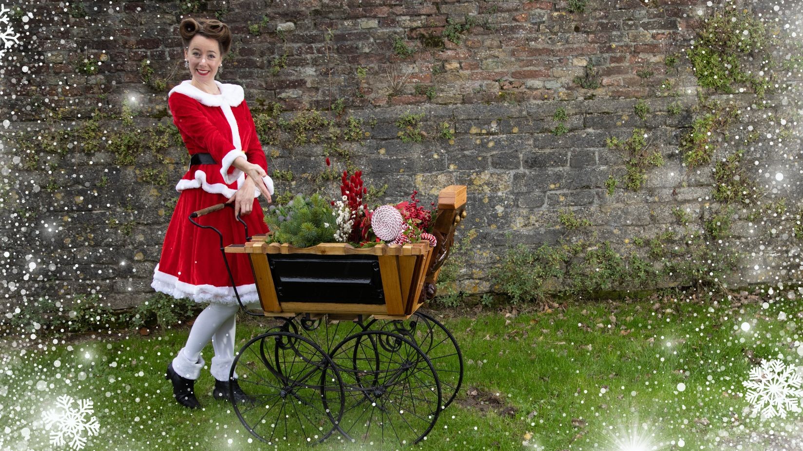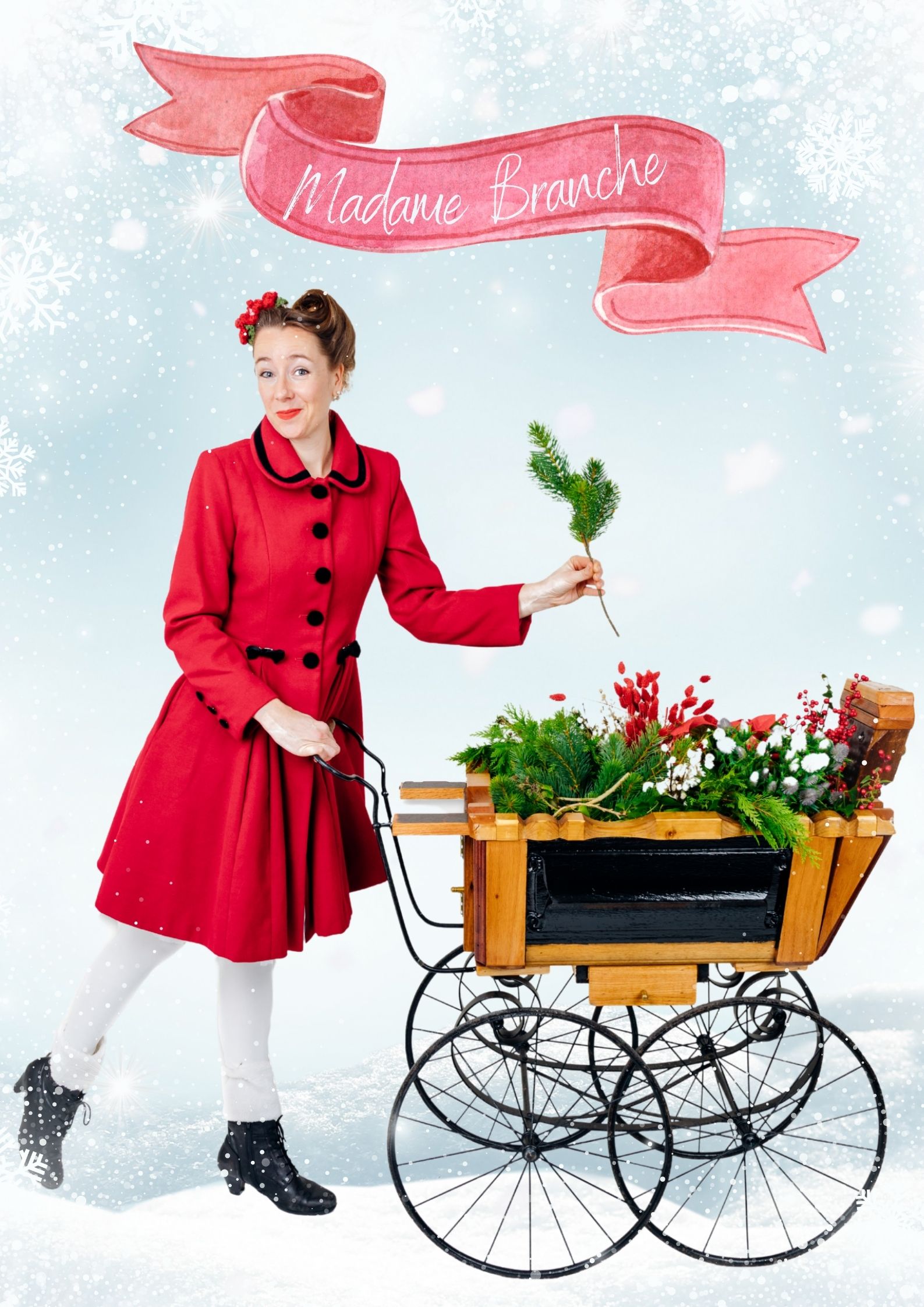 Met haar kar vol winterse takken wandelt zij rond om uw publiek te ontroeren en verwonderen.