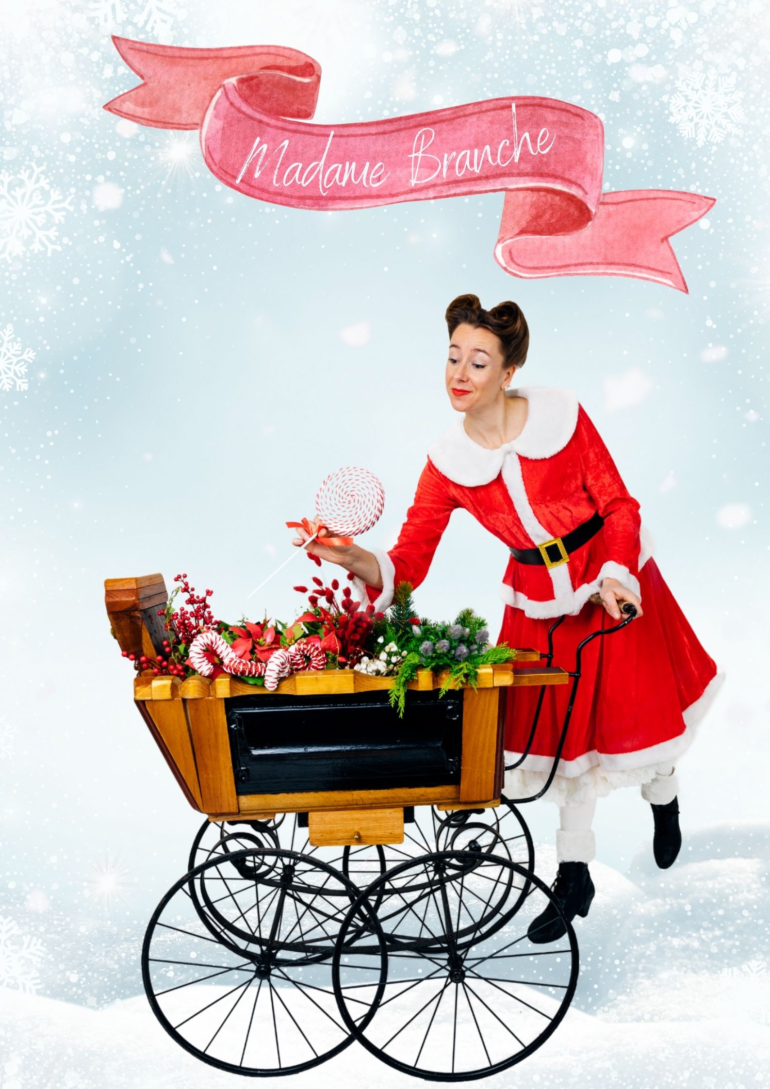 Met haar kar vol winterse takken wandelt zij rond om uw publiek te ontroeren en verwonderen.