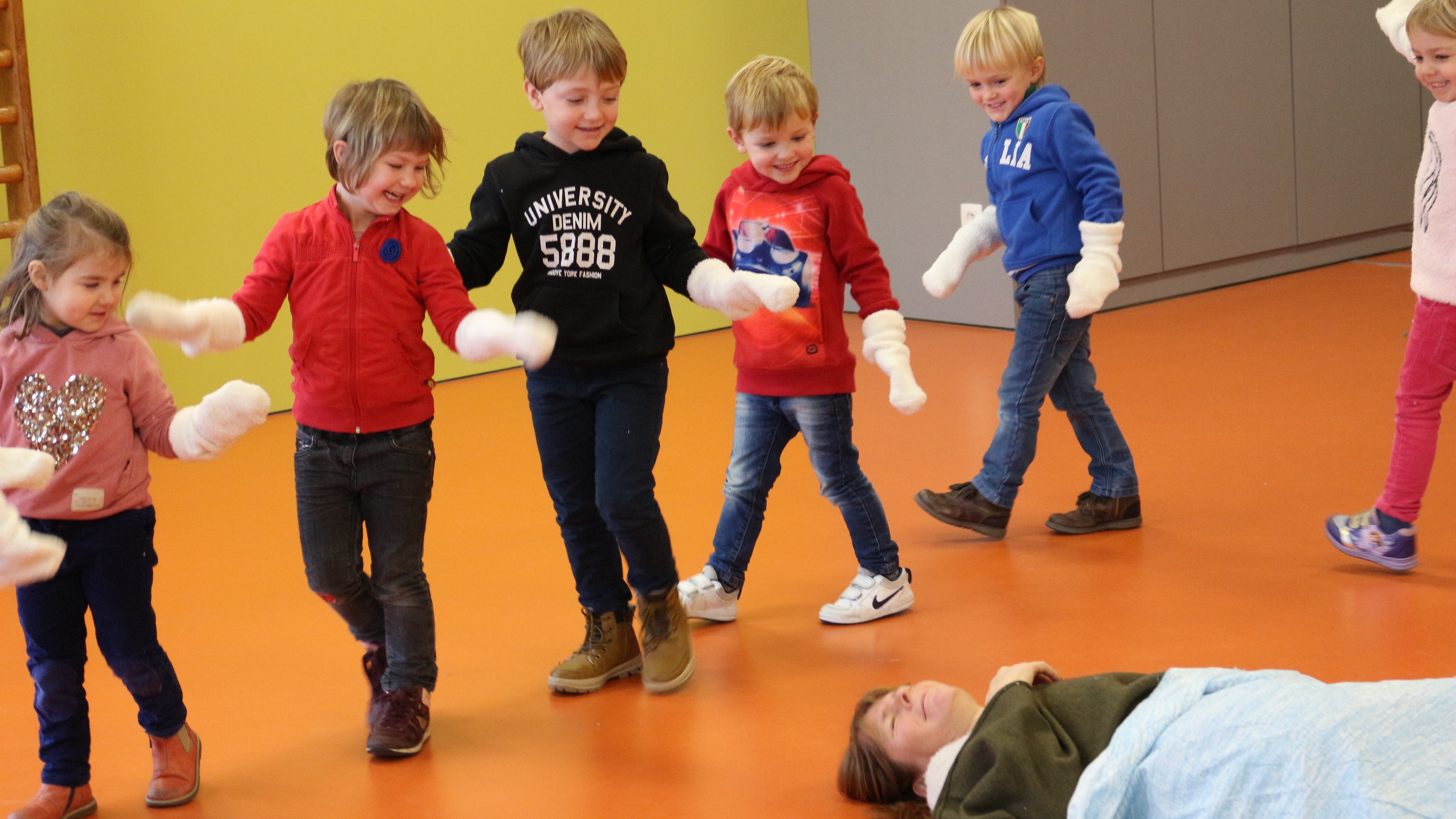 Duur: 55 minuten (door de afwisseling van liedjes, bewegen en zelf spelen zijn ook de allerkleinsten van begin tot eind geboeid).